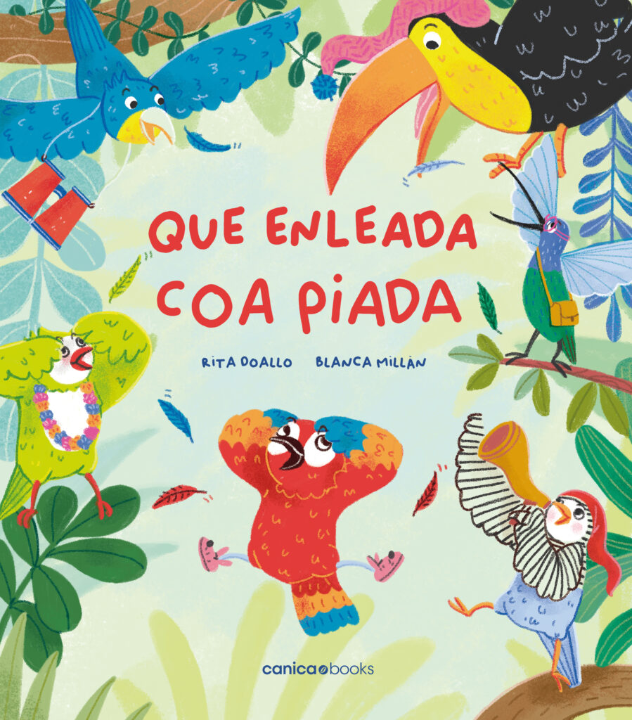 Quien tiene hijos pequeños sabe lo difícil que puede ser a veces que se vayan a la cama. A la mamá de este cuento, desesperada por la cantinela de su peque cada noche «¡No me quiero ir a dormir!», se le ocurre una idea genial que acabará en una aventura de lo mas divertida y aterradora a la vez, con la que no podrás parar de reirte. Además, este cuento está escrito en rima con estructura acumulativa por Mónica Álvarez Ganado e ilustrado por Marisa MoreaISBN: 978-84-129895-4-0La aparición de una rosquilla que alguien dejó tirada en el parque es el comienzo de las aventuras y desventuras por apropiarse del botín de los tres protagonistas de esta historia: un saltamontes, una hormiga y un gorrión. Una divertidísima historia de cómo apropiarse de algo y cómo llegar a una solución colaborativa. Escrita en rima por Pablo Rumoroso e ilustrada por Sara Mateos. ISBN: 978-84-129895-5-7A aparición dunha rosquilla que alguén deixou tirada no parque é o comezo das aventuras e desventuras por apropriarse do botín dos tres protagonistas desta historia: un saltón, unha formiga e un pardal. Unha historia divertidísima de como apropiarse de algo e como chegar a unha solución colaborativa. Escrita en rima por Pablo Rumoroso e ilustrada por Sara Mateos. Traducido e adaptado por Rita Doallo. ISBN: 978-84-129895-6-4Segunda edición. Menuda lea se armou na selva con tanto pío pío! E todo porque dous monos pequechos espertaron esta mañá con moita fame e acordaron cambiar o seu almorzo habitual de piña, aguacate e banana por uns cocos. Ao papagaio, que casualmente, estaba a oír a súa conversa, sorprendeulle tanto ao enterarse de que os monos tolearan e decidiran comer os mocos, que correu contarlle a nova ao guacamaio. O guacamaio contoulla ao tucano. O tucano á cotorra. A cotorra ao colibrí… Por suposto, cada un transmitiu a mensaxe ao seu xeito. E para cando o rumor chegou ao periquito, os moniños xa non eran cocos os que ían comer, se non… seguro que o queres saber? Esta divertidísima historia dunha enleada épica na selva escribiuna Rita Doallo e ilustrouna Blanca Millán ISBN: 978-84-129895-0-2¿Qué harías si te tragases una mosca por accidente? Descubre las soluciones mas creativas y rocambolescas a problemas diminutos en este divertidísimo cuento de Gracia Iglesias y Gómez. Un clásico rimado de Canica Books, que siempre hace partirse de risa a los peques y que ya está en su quinta edición. ISBN: 978-84-124207-2-2Qué harías si te tragases una mosca por accidente? Descubre as solucións mas creativas e rocambolescas a problemas diminutos neste divertidísimo conto de Gracia Iglesias e Gómez. Un clásico rimado de Canica Books, que sempre fai partirse de risa aos pequenos e que xa está na súa quinta edición en castelán Por una mosca de nada. Traducido e adaptado por Rita Doallo. ISBN: 978-84-129895-7-1